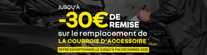 Jusqu’à -30€ de remise sur le remplacement de votre courroie d’accessoire