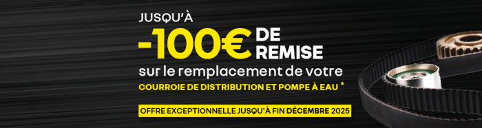 Jusqu'à -100€ DE REMISE * sur le changement de votre courroie de distribution et pompe à eau